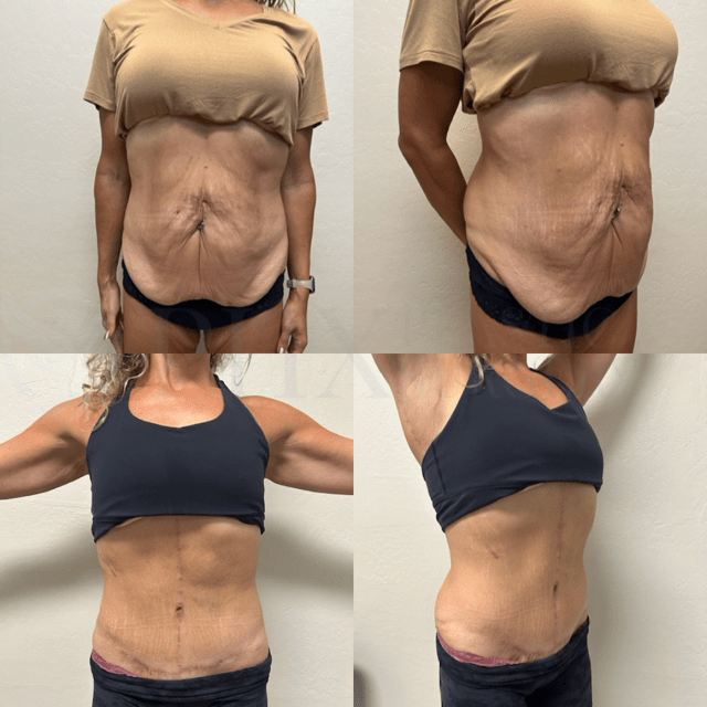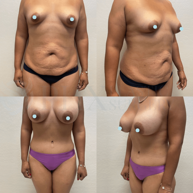 Combined abdominal contouring and breast enhancement to restore shape, definition, and balance after pregnancy or body changes.